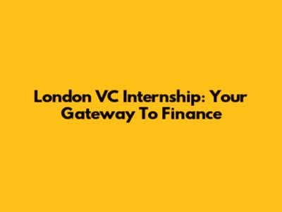 London VC Internship: Your Gateway To Finance