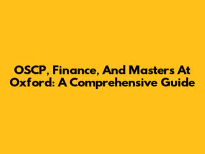 OSCP, Finance, And Masters At Oxford: A Comprehensive Guide