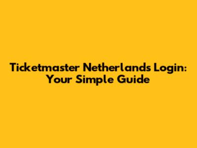 Ticketmaster Netherlands Login: Your Simple Guide