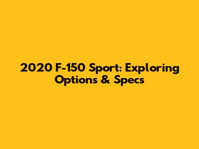 2020 F-150 Sport: Exploring Options & Specs