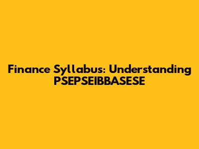 Finance Syllabus: Understanding PSEPSEIBBASESE