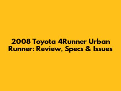 2008 Toyota 4Runner Urban Runner: Review, Specs & Issues