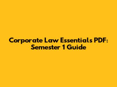 Corporate Law Essentials PDF: Semester 1 Guide