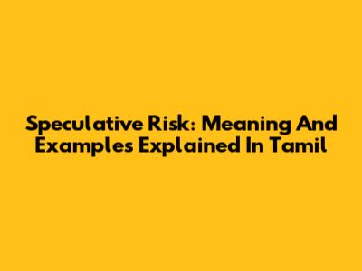 Speculative Risk: Meaning And Examples Explained In Tamil
