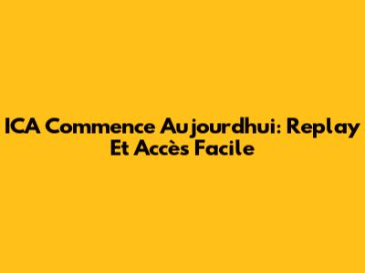 ICA Commence Aujourd'hui: Replay Et Accès Facile