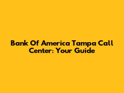 Bank Of America Tampa Call Center: Your Guide