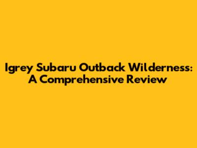 Igrey Subaru Outback Wilderness: A Comprehensive Review