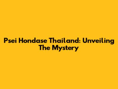 Psei Hondase Thailand: Unveiling The Mystery
