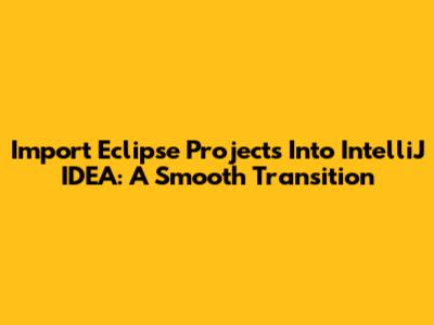 Import Eclipse Projects Into IntelliJ IDEA: A Smooth Transition