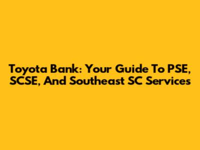 Toyota Bank: Your Guide To PSE, SCSE, And Southeast SC Services