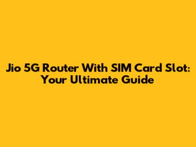 Jio 5G Router With SIM Card Slot: Your Ultimate Guide