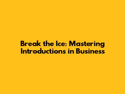 Remember, the key is to be genuine, respectful, and attentive. Pay attention to people's body language and responses, and adjust your approach accordingly. With a little practice, you can master the art of breaking the ice and create more positive and productive interactions in your business life.
