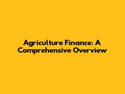 Agriculture Finance: A Comprehensive Overview