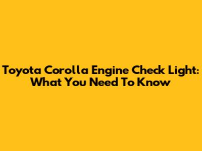 Toyota Corolla Engine Check Light: What You Need To Know