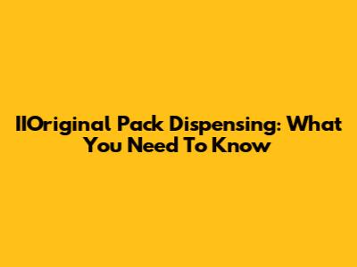 IIOriginal Pack Dispensing: What You Need To Know
