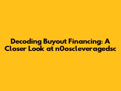 In conclusion, navigating the world of buyout financing, especially when entities like n0oscleveragedsc are involved, requires a comprehensive understanding of financial markets, legal regulations, and strategic considerations. By staying informed and adapting to the ever-changing landscape, you can unlock the potential for success in this dynamic field.
