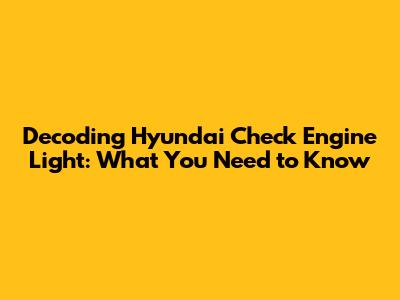 Decoding Hyundai Check Engine Light Codes