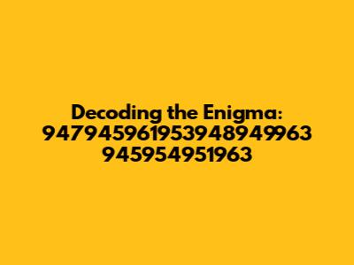 Hey guys! Ever stumbled upon something so cryptic it feels like deciphering an ancient code? Well, that's what we're diving into today! The number sequence "947945961953948949963 945954951963" might seem like a random jumble at first glance, but let's put on our detective hats and explore some potential meanings and applications of this intriguing string of digits. In this article, we're going to break down this numerical mystery, exploring various angles from potential mathematical significance to its possible uses as an identifier or code. Get ready to explore the fascinating world of numbers and codes, as we try to make sense of the seemingly senseless.