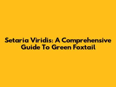 Setaria Viridis: A Comprehensive Guide To Green Foxtail