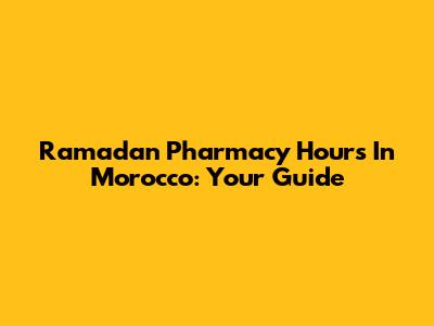 Ramadan Pharmacy Hours In Morocco: Your Guide