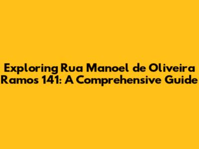 Hey guys! Let's dive into Rua Manoel de Oliveira Ramos 141! This guide is designed to give you the complete lowdown on this address, covering everything from its location and surroundings to potential points of interest nearby. Whether you're curious about living there, visiting a business located there, or just plain curious, we've got you covered. We'll break down the area, providing insights that should help you understand what this address has to offer. So, buckle up, and let's explore! This is more than just an address; it's a potential hub of activity, a place of residence, or a business location. Getting a handle on what's around is key to understanding its context within the wider city. We'll be looking at the neighborhood, potential amenities, and maybe even some interesting tidbits. This is all about giving you the best possible overview. We'll also cover public transport options, nearby restaurants, and essential services to ensure you have a clear picture of what Rua Manoel de Oliveira Ramos 141 truly entails. Ready? Let's get started!