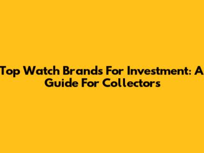 Top Watch Brands For Investment: A Guide For Collectors
