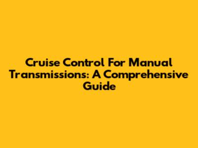 Cruise Control For Manual Transmissions: A Comprehensive Guide