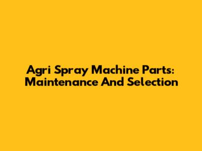 Agri Spray Machine Parts: Maintenance And Selection