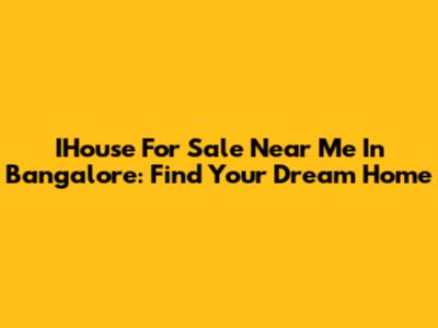 IHouse For Sale Near Me In Bangalore: Find Your Dream Home