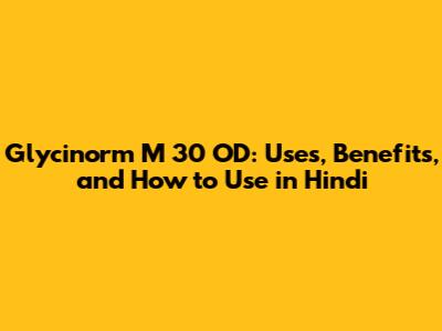 Hey guys! Let's dive into Glycinorm M 30 OD and break down everything you need to know about it, especially if you're looking for info in Hindi. This medication is pretty important for managing blood sugar levels, so understanding how it works and what it does is super crucial. We'll cover the uses, the benefits, how to take it, and some important things to keep in mind. So, grab a cup of chai, and let's get started!