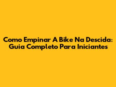 Como Empinar A Bike Na Descida: Guia Completo Para Iniciantes