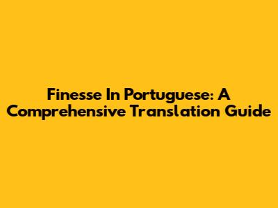 Finesse In Portuguese: A Comprehensive Translation Guide