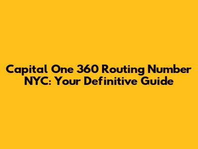 Capital One 360 Routing Number NYC: Your Definitive Guide