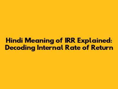 Hey guys! Ever stumbled upon the term IRR and wondered what it means, especially in Hindi? Well, you're in the right place! We're going to break down the Hindi meaning of IRR (Internal Rate of Return), making it super easy to understand. We'll delve into what IRR is, why it's important, and how it's used, all while keeping things friendly and understandable. Let's dive in and demystify this financial concept together!