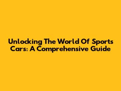 Unlocking The World Of Sports Cars: A Comprehensive Guide