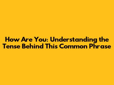 Have you ever wondered about the grammar behind the simple question, “How are you?” It's a phrase we use every day, often without thinking about its structure. But if you're learning English or just curious about grammar, understanding the tense used in “How are you?” can be quite insightful. So, let's break it down, shall we?