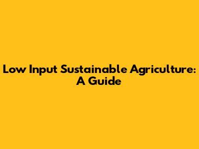 Low Input Sustainable Agriculture: A Guide