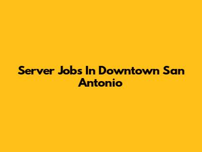 Server Jobs In Downtown San Antonio