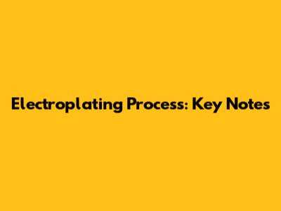 Electroplating Process: Key Notes