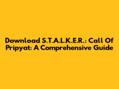 Download S.T.A.L.K.E.R.: Call Of Pripyat: A Comprehensive Guide