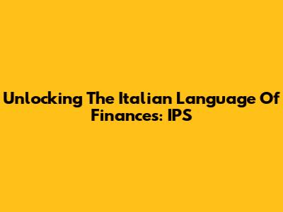 Unlocking The Italian Language Of Finances: IPS