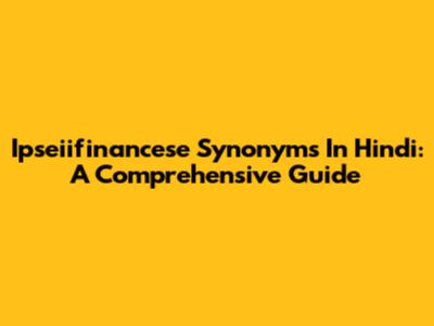 Ipseiifinancese Synonyms In Hindi: A Comprehensive Guide