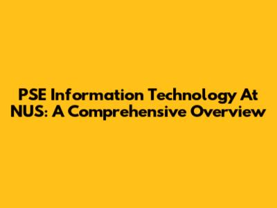 PSE Information Technology At NUS: A Comprehensive Overview