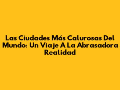 Las Ciudades Más Calurosas Del Mundo: Un Viaje A La Abrasadora Realidad