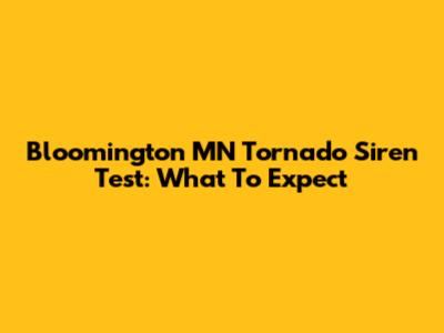 Bloomington MN Tornado Siren Test: What To Expect