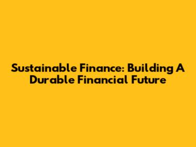 Sustainable Finance: Building A Durable Financial Future