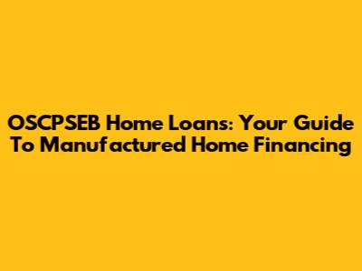 OSCPSEB Home Loans: Your Guide To Manufactured Home Financing