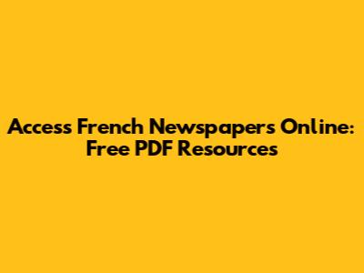 Access French Newspapers Online: Free PDF Resources