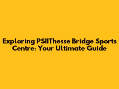 Exploring PSIIThesse Bridge Sports Centre: Your Ultimate Guide