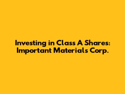 We're going to break down everything you need to know, from the fundamentals of Class A shares themselves to the specifics of Important Materials Corporation's business, their market position, and why their Class A stock might (or might not) be a great fit for your investment strategy. We'll cover potential benefits, risks, and even give you some pointers on how to get started if you decide this is something you want to explore further. Our goal here is to make this complex topic super easy to understand, offering high-quality content that provides real value. So, whether you're a seasoned investor or just dipping your toes into the world of stocks, stick around. You might just find your next big idea here, especially concerning the fascinating world of Important Materials Corporation and its unique stock structure. Get ready to learn about Important Materials Corporation Class A shares and why they could be a significant player in your financial future, potentially offering a stable, dividend-yielding asset to consider.